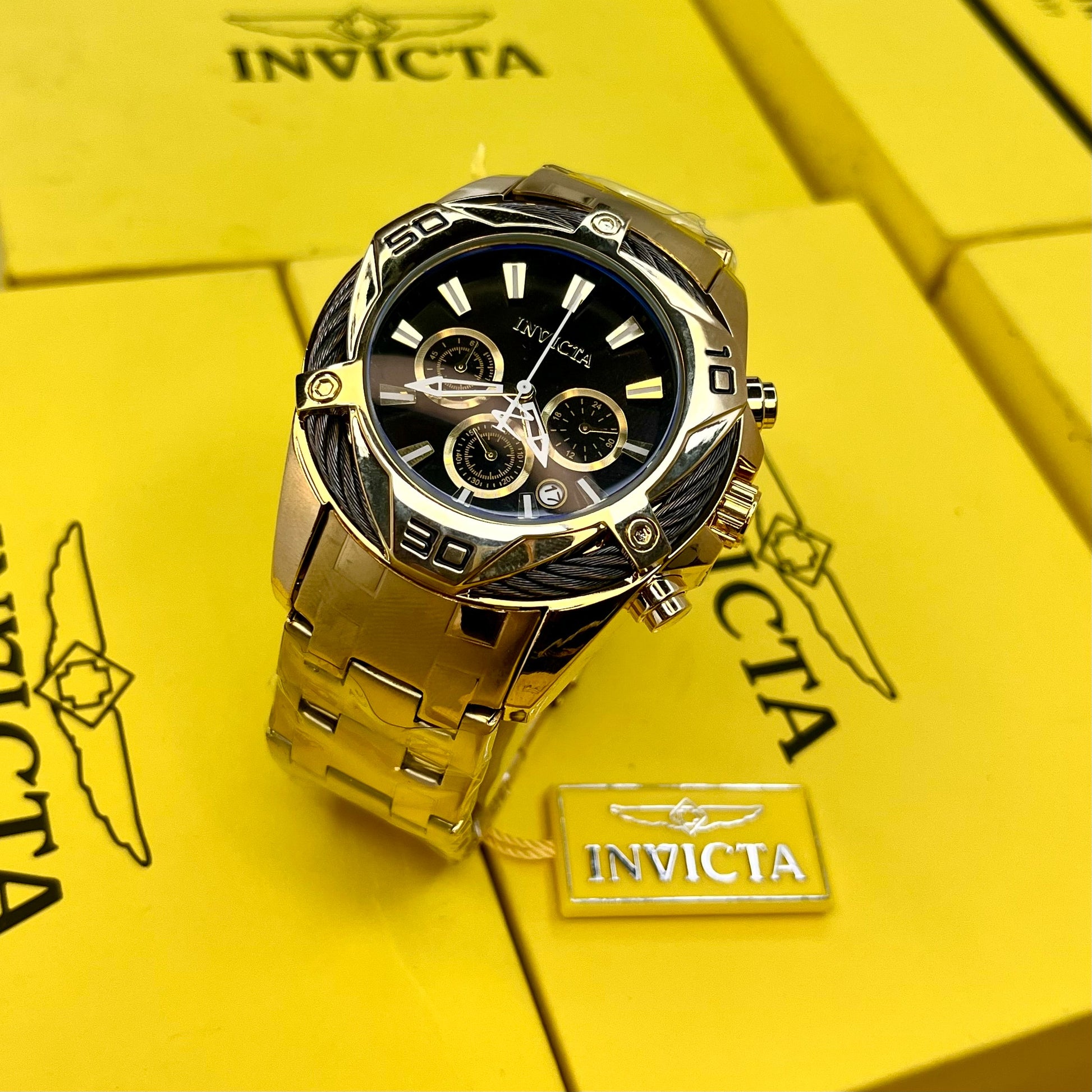 INVICTA BOLT ZEUS ACERO PARA HOMBRE FONDO DORADO REF-DD