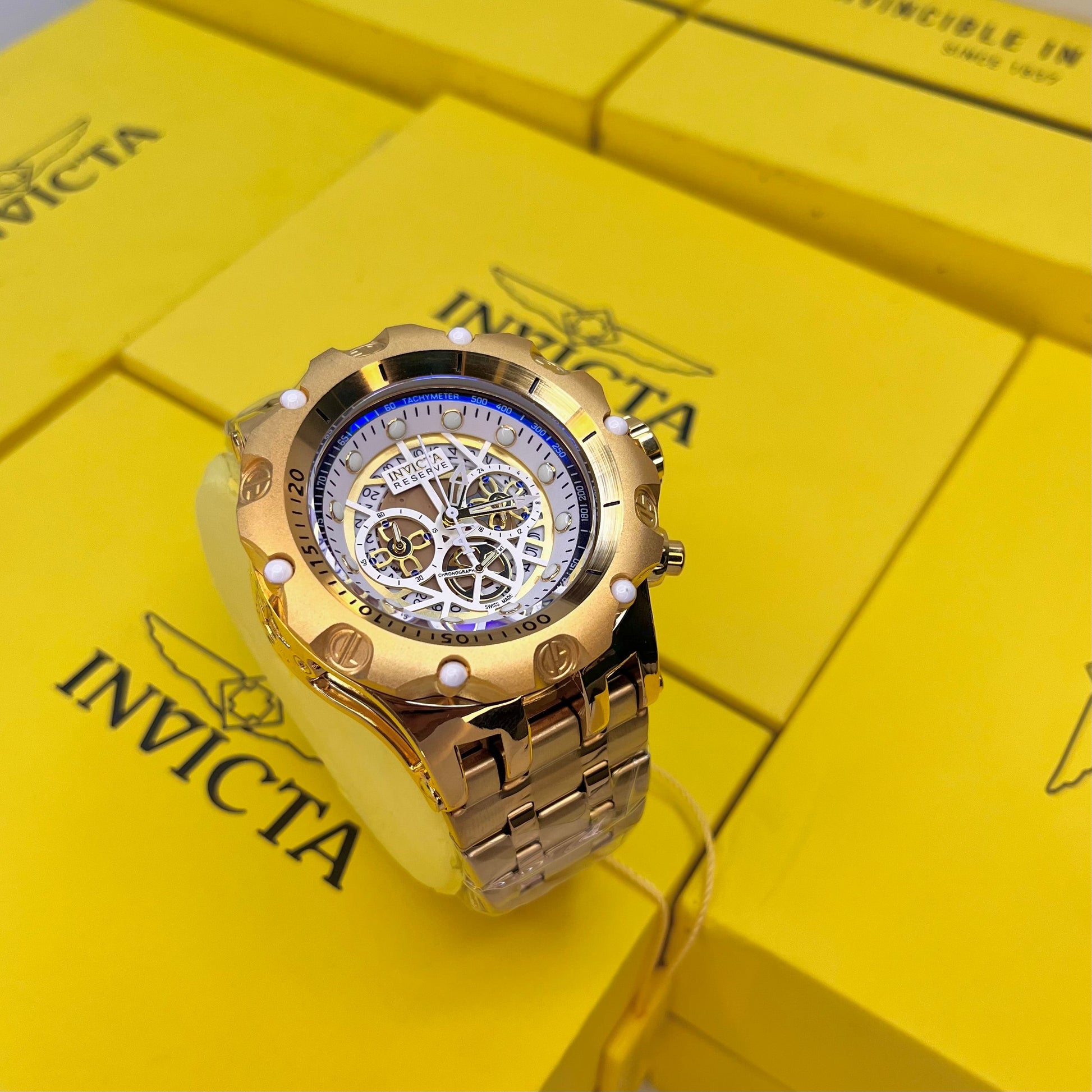 INVICTA BOLT ZEUS ACERO PARA HOMBRE FONDO DORADO REF-DD