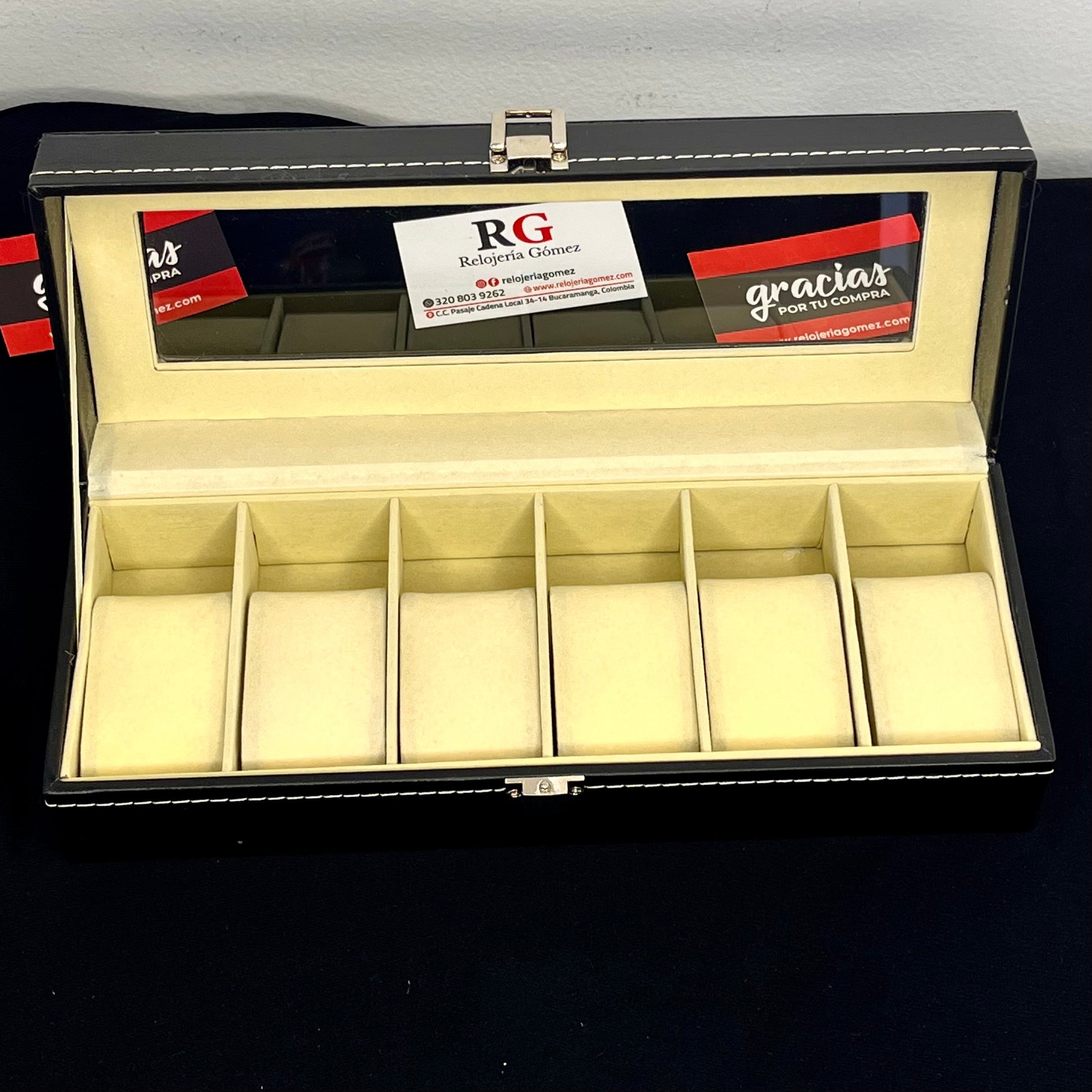 Diseñada para almacenar hasta 6 relojes, lo que la hace ideal para coleccionistas.